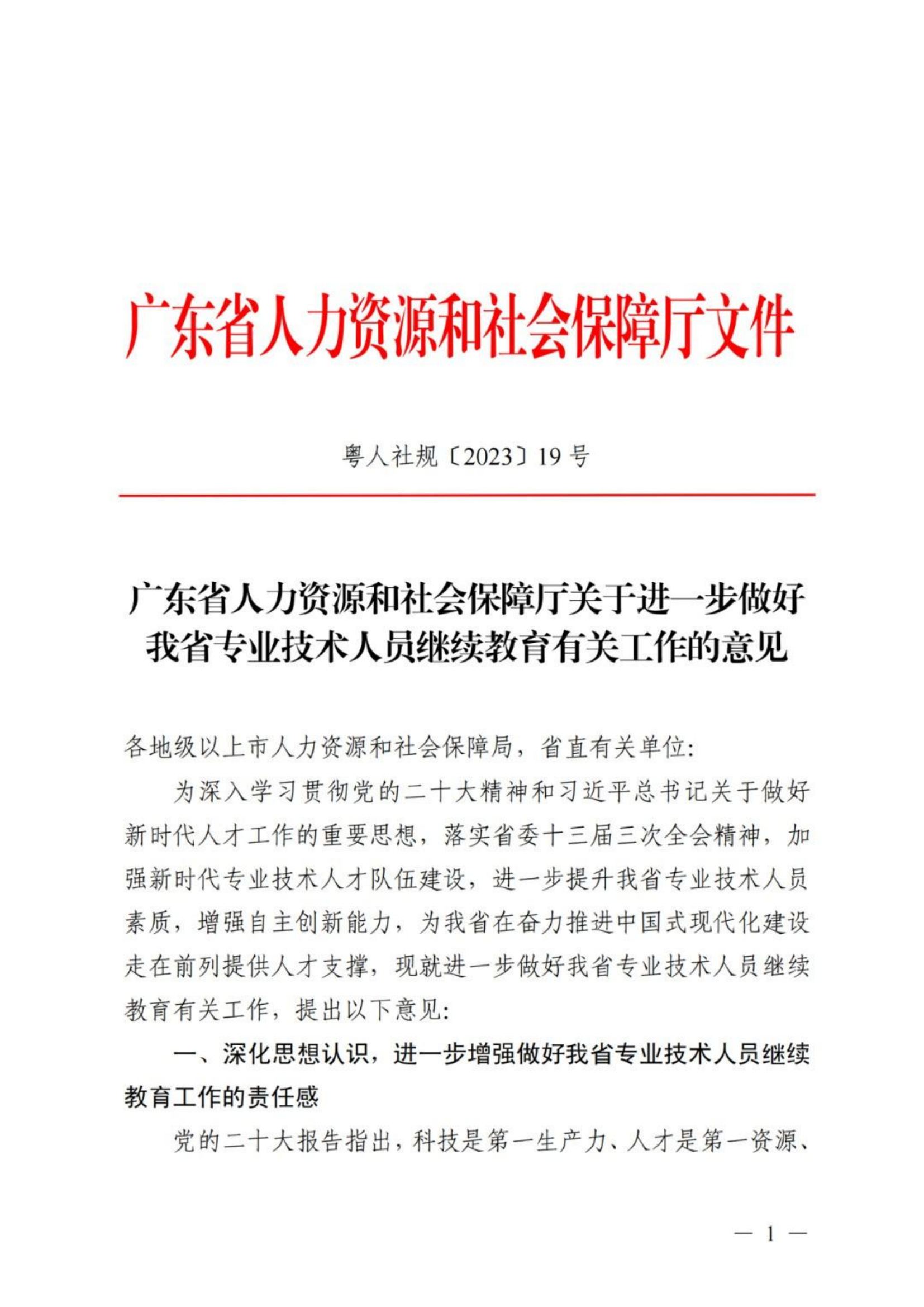 广东省人力资源和社会保障厅关于进一步做好我省专业技术人员继续教育有关工作的意见