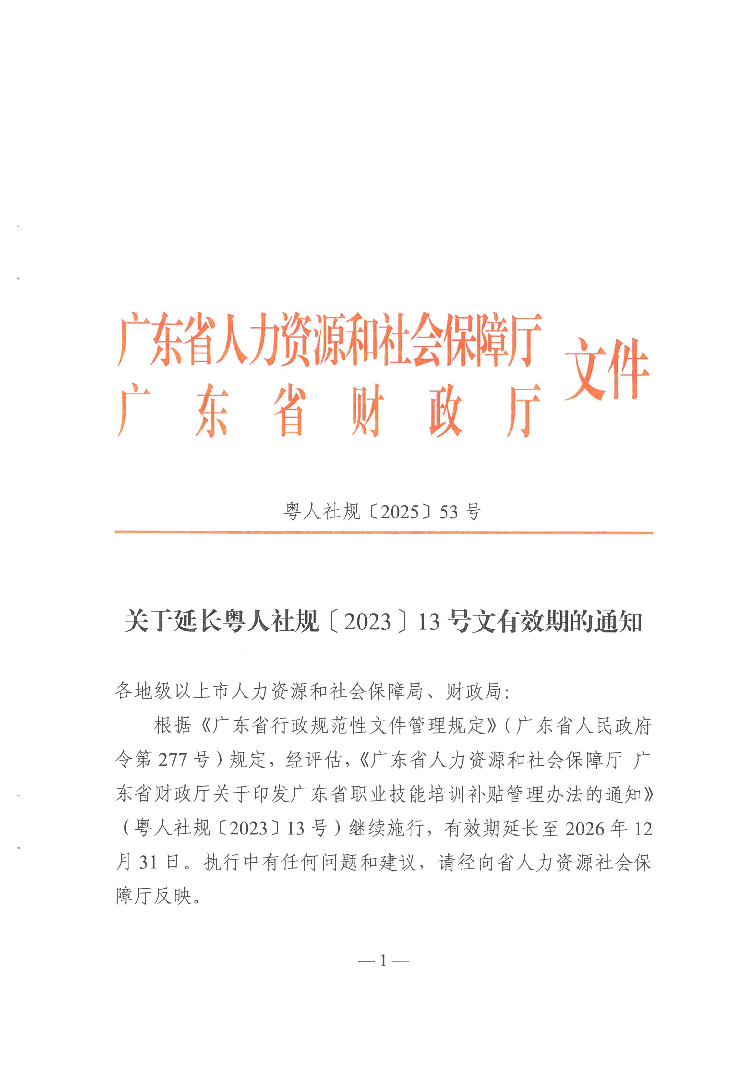 关于延长粤人社规[2023]13号文有效期的通知(粤人社规〔